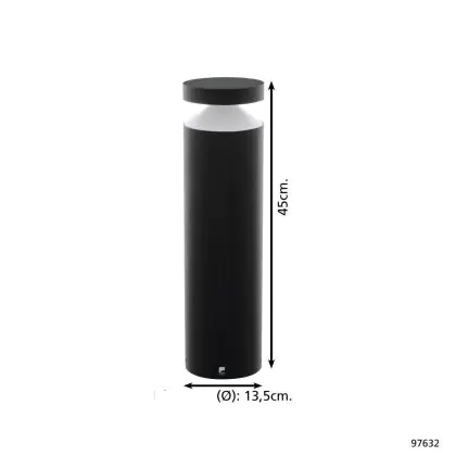 Eglo Pedestal Lamp Melzo Outdoor Aluminium Black 11W 1300lm - 830 Warm White