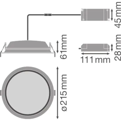 Description Ledvance LED Downlight Alu DN200 35W 3150lm 100D - 865 Daylight | 215mm - IP44 - Dali Dimmable