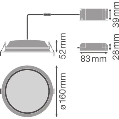 Description Ledvance LED Downlight DN150 Aluminum 14W 1260lm - 840 Cool White | 160mm - Cutout 150mm - IP44
