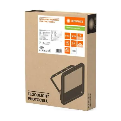 Ledvance LED Floodlight Aluminium Black 100W 15000lm 100D - 840 Cool White | IP66 - Light Sensor - Symmetrical