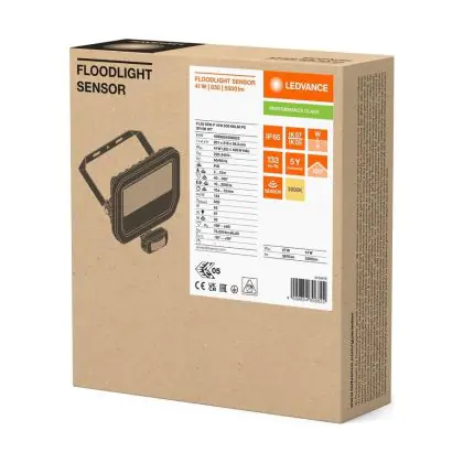 Ledvance LED Floodlight Aluminium White 41W 5500lm 100D - 830 Warm White | IP65 - Motion And Light Sensor - Symmetrical