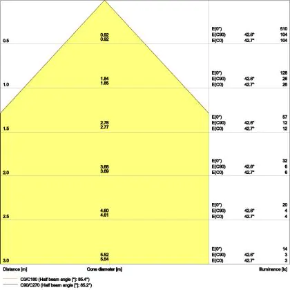 The colour code is a combination of colour rendering (CRI) and light colour (Kelvin). The first number indicates the colour rendering (1 = very poor colour rendering, 9 = maximum colour fastness). The second and third number contains the light colour. Example: the colour code 830 consists of good colour rendering (8) and warm white light (3000K). |