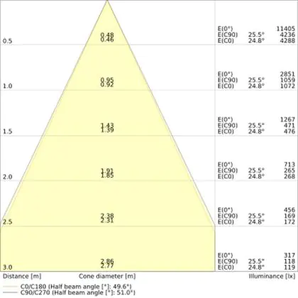 The colour code is a combination of colour rendering (CRI) and light colour (Kelvin). The first number indicates the colour rendering (1 = very poor colour rendering, 9 = maximum colour fastness). The second and third number contains the light colour. Example: the colour code 830 consists of good colour rendering (8) and warm white light (3000K). |