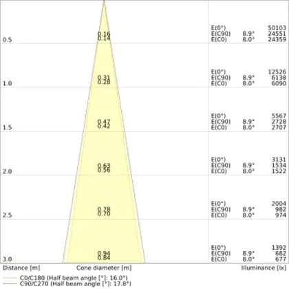 The Luminous Efficacy (lm/W) indicates how efficiently a light source uses energy. We divide the number of lumens by the wattage. The higher the number, the more efficient a product is in terms of energy consumption. LED lighting has a considerably higher lumen/Watt ratio than conventional lighting.