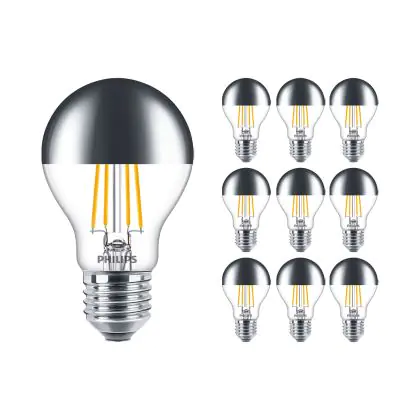 Multipack 10x Philips Classic LED Bulb E27 Pear Mirror 7.2W 650lm 650lm - 827 Extra Warm White | Dimmable - Replaces 60W