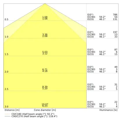 The colour code is a combination of colour rendering (CRI) and light colour (Kelvin). The first number indicates the colour rendering (1 = very poor colour rendering, 9 = maximum colour fastness). The second and third number contains the light colour. Example: the colour code 830 consists of good colour rendering (8) and warm white light (3000K). |
