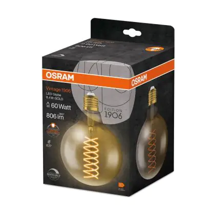 Osram Vintage 1906 LED E27 Globe Filament Gold 8.4W 806lm - 824 Extra Warm White | Replaces 60W - Dimmable