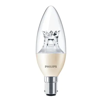 Description Philips MASTER LED Candle B15 Crown Clear 6W 470lm - 822-827 Dim To Warm | Dimmable - Replaces 60W
