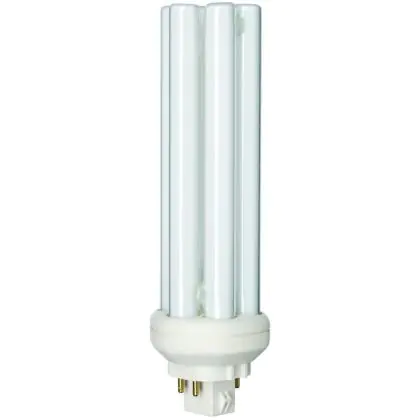 The Philips PL-T TOP 4P lamps are 4 pin socket fluorescent lamps that are very efficient for long run times. They are more efficient than 4P PL-T standard bulbs and their performance is optimized over wide temperature ranges. Philips PL-T TOP 42W 830 4P measure 1500 cm and have a GX24q-4 socket type, which corresponds to a socket with 4 pins.