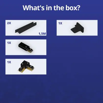 | Manufacturer Name | Complete L shaped 1-Phase Track Set Black – 1,5 x 1,5 meter incl. End Cap, Power Connector and L -C | |
